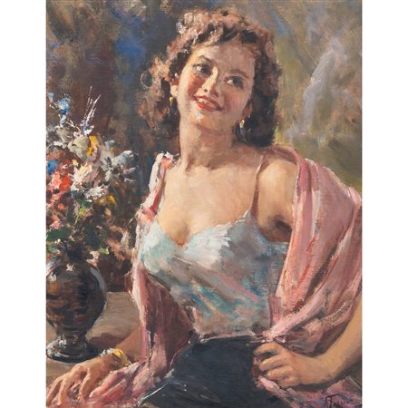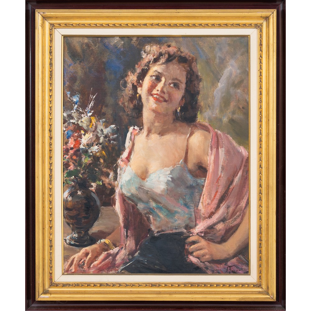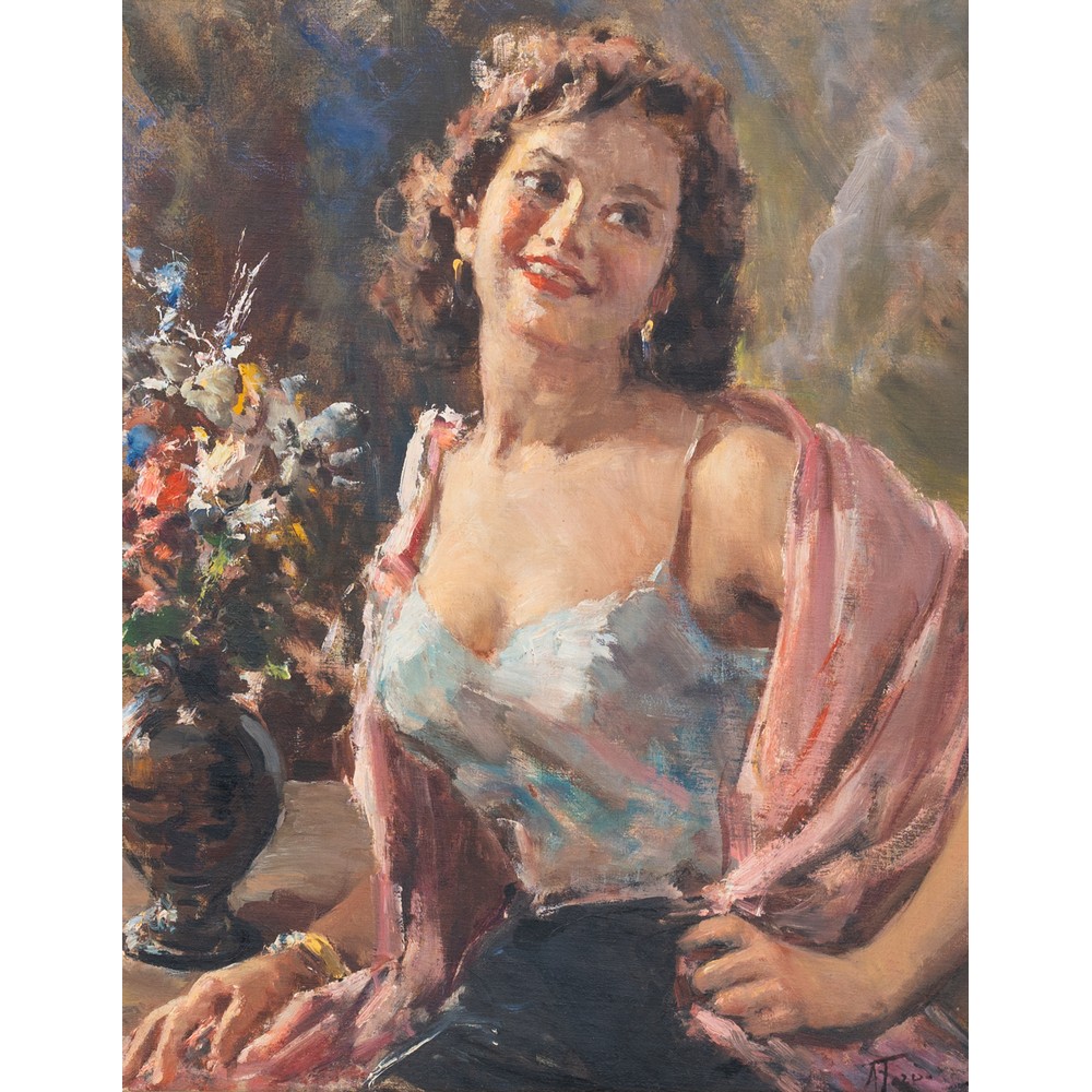 Donna con scialle e vaso con i Fiori