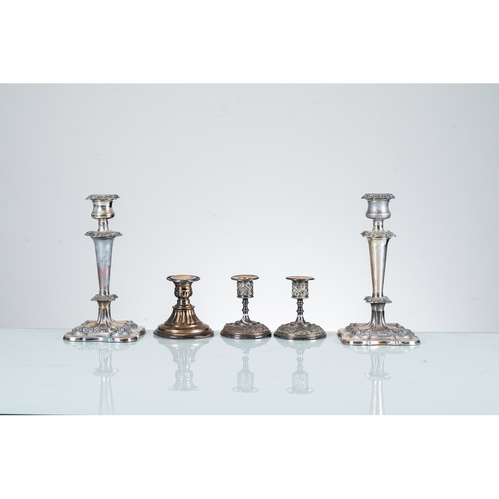 Lot 407 | DUE COPPIE DI MONOCERA E MONOCERA in metallo argentato
