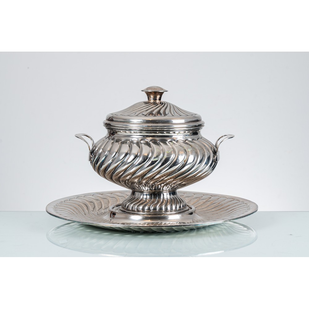 GRANDE ZUPPIERA CON PIATTO in silver plated lavorato.