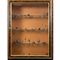 Bacheca in legno di radica con all'interno collezione di trentaquattro piccole sculture in argento e metallo argentato.