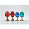 Quattro uova in cristallo policromo e lumeggiature in oro, basi in argento vermeil 925 sbalzato.