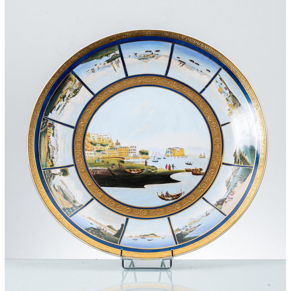 Grande piatto in porcellana decorata raffigurante "Paesaggi e siti napoletani".