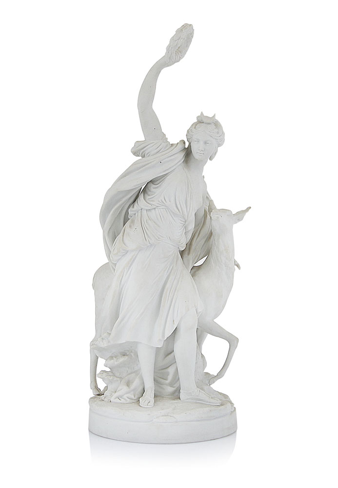 GRUPPO IN BISCUIT, FRANCIA, INIZIO XX SECOLO, raffigurante la dea Diana con cerbiatto da un modello di Boizot.