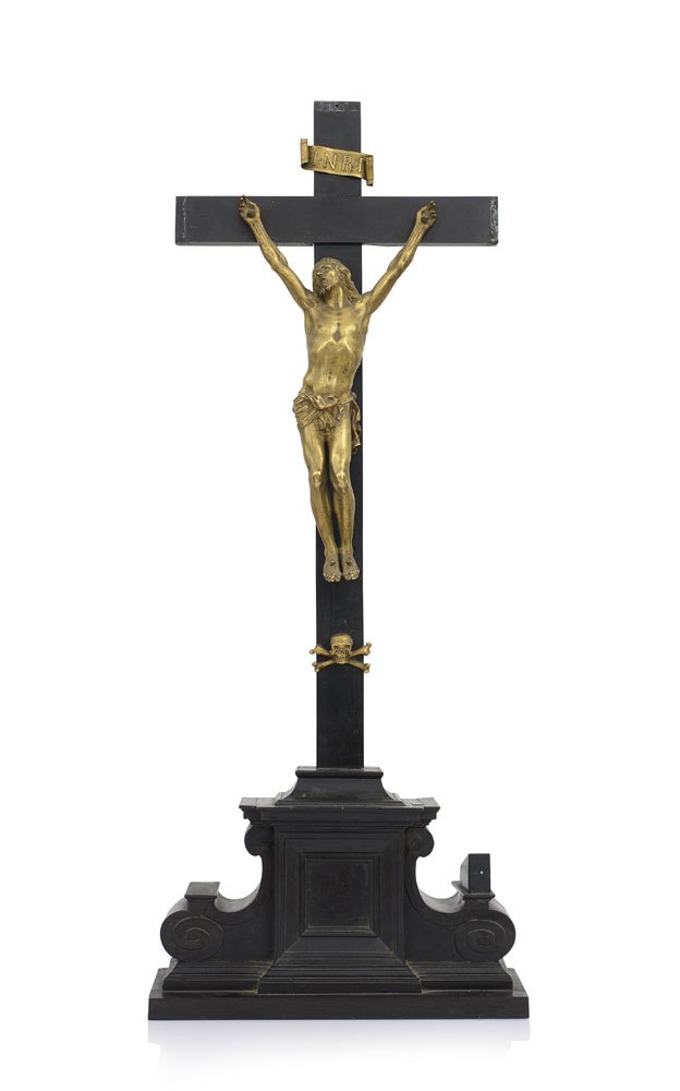 Bronzo dorato, croce in legno ebanizzato, alt. totale cm 81.
