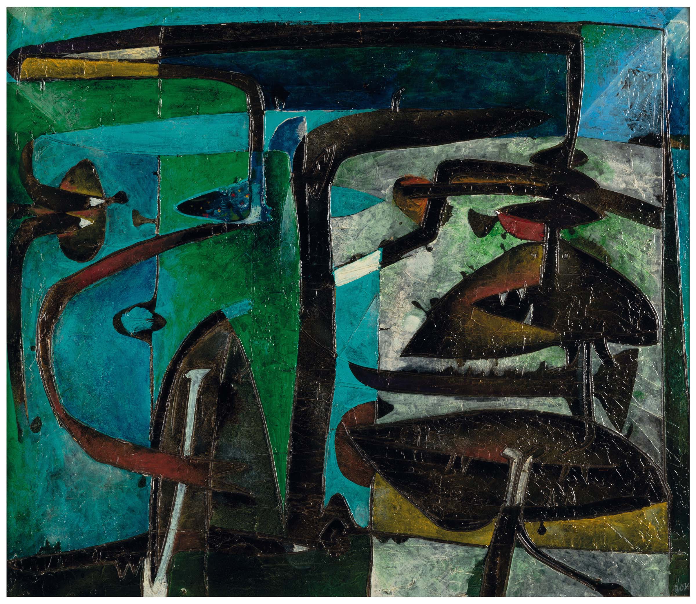 Gianni Dova (1925-1991), Interno smalto su tela, cm 60x70 firmato in basso a destra e sul retro intitolato e firmato, Provenienza: Anna Dova