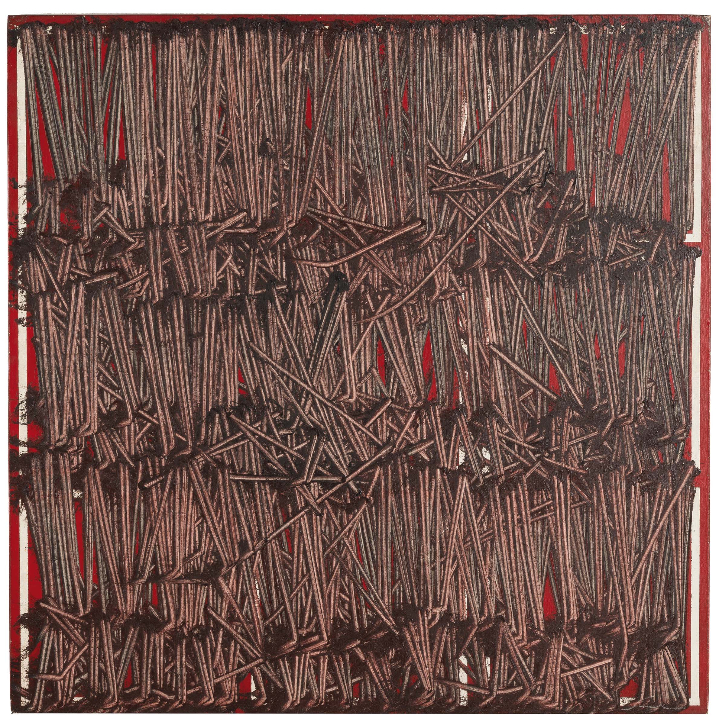 Emilio Scanavino (1922-1986), Tramatura, 1976 olio su tela, cm 100x100 firmato, datato ed intitolato al retro, timbro della galleria d'arte contemporanea Buonaparte di Milano con il numero 412 Provenienza: Studio Marconi, Milano, con etichetta al retro