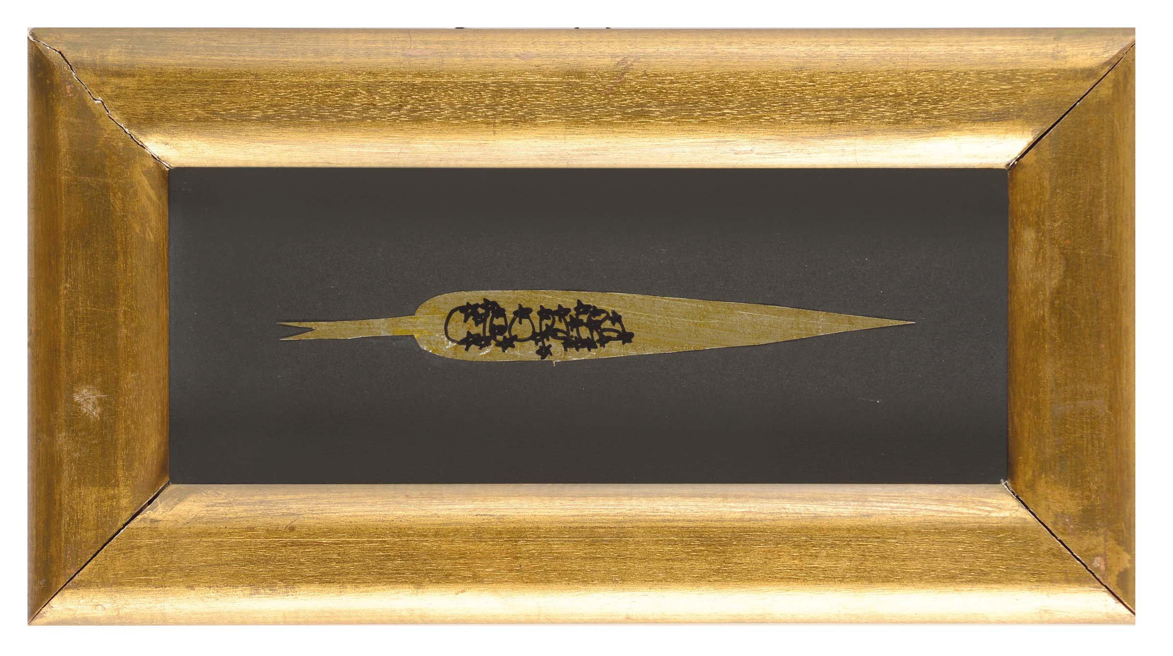 Byars James Lee ( 1932-1997), Cleopatra's snakes tecnica mista su carta dorata, cm 2,5x22 Etichetta Galleria Cesarea , Genova; Etichetta Galleria Cleto Polcina, Roma