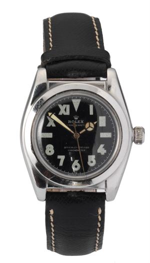ROLEX Oyster perpetual chronometer anni '40 "Ovetto" Diametro 32 mm Cassa in due corpi con fondo e corona a vite. Quadrante definito tropicale con numerazione romana e araba alternata. Movimento automatico. Oyster perpetual chronometer 40's "Ovetto"