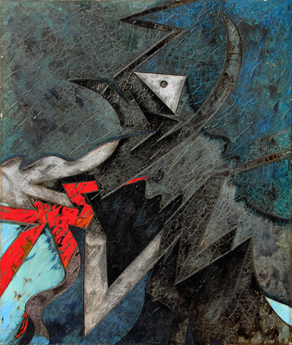 DOVA GIANNI Coriola verso sera anni 60 olio e smalto su tela cm. 70 X 60 Firma, titolo 'Dova G, Coriola verso sera' (al retro)