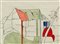 ADAMI VALERIO Esterno coloniale 1967 tecnica mista su cartoncino cm. 41 X 55 Titolo 'Esterno coloniale' (in basso a sinistra); firma, luogo, data 'Adami, Cuba, 67' (in basso a destra)