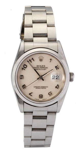 ROLEX Oyster Perpetual Datejust. Ref. 16200 anni '00 Diametro 36 mm Cassa oyster in tre corpi con fondo e corona a vite, bracciale oyster. Quadrante jubilé con indici a numeri applicati. Movimento automatico, corredato di astuccio e certificato. Oyster Perpetual Datejust. Ref. 16200 00's