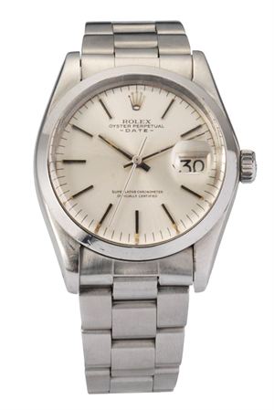 ROLEX Oyster Perpetual Date. Ref. 1500 anni '70 Diametro 34 mm Cassa oyster in tre corpi con fondello e corona a vite, bracciale oyster, quadrante con indici applicati, movimento automatico. An Oyster Perpetual Date ref 1500 70's