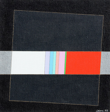 CARMI EUGENIO Spiraglio 13 1999 acrilici su juta cm. 50 X 50 Firma, data 'Carmi, 99' (in basso a destra) Firma, data 'Carmi, 1999' (al retro) Autentica dell'artista su fotografia