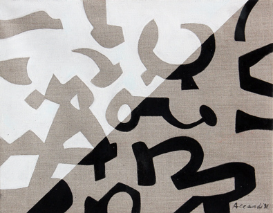 ACCARDI CARLA Chiaroscuro 1991 vinilico su tela cm. 30 X 40 Firma, data 'Accardi, 91' (in basso a destra) Firma, data, titolo 'Accardi, 91, Chiaroscuro' (al retro) Autentica dello Studio Accardi, con firma dell'artista, e con n° 67/91