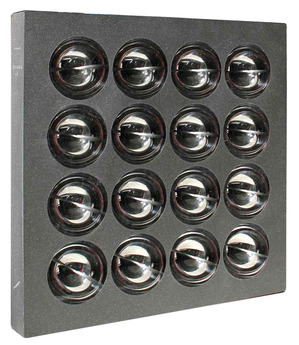 COSTALONGA FRANCO Oggetto cromocinetico OCBABFG 1973 sfere in metacrilato metallizzato e plexiglass cm. 70 X 70 Firma, titolo, firma, data 'Costalonga, OCBABFG, F. Costalonga, 73' (al retro) Autentica dell'artista su fotografia