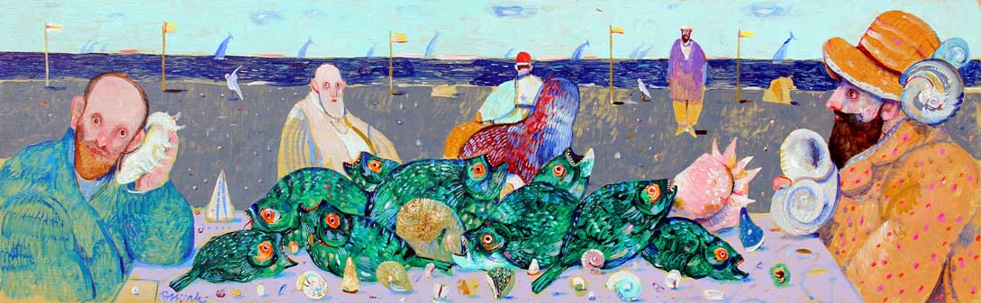 POSSENTI ANTONIO Una spiaggia olio su tavola cm. 30 X 100 Firma 'Possenti' (in basso a sinistra) Firma, titolo 'Possenti, Una spiaggia' (al retro) Galleria Astuni (PU) Collezione privata (MI)