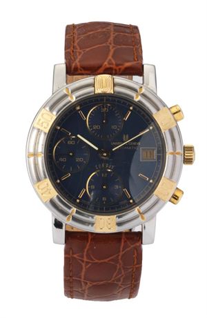 UNIVERSAL GENEVE Cronografo 3 contatori anni '90 in acciaio e oro Diam 38 mm...