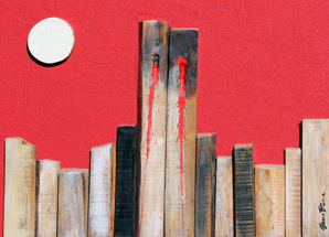 DE LUTTI PIERLUIGI Doppie ferite 2001/2002 legno e tecnica mista su tavola cm. 60 X 80 Firma, data 'De Lutti P, 01-2' (in basso a destra) Titolo, misure, data, firma 'Doppie ferite, 80x60, 2001-02, De Lutti' (al retro) Autentica dell'artista su fotografia