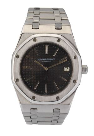 AUDEMARS PIGUET Modello Royal Odk Jumbo anni '70 Diametro 40 mm Storico modello della Maison di Le Brassus che deve la sua linea al disegno del vivo di volata dei cannoni delle navi. Classe Hms Royal Odk e King George V della marina reale britannica. Cassa in acciaio in due corpi con lunetta ottagonale fermata da viti, bracciale integrato. Quadrante con lavorazione grande tapisserie. Movimento automatico calibro AP2121. Royal Odk Jumbo model 70's