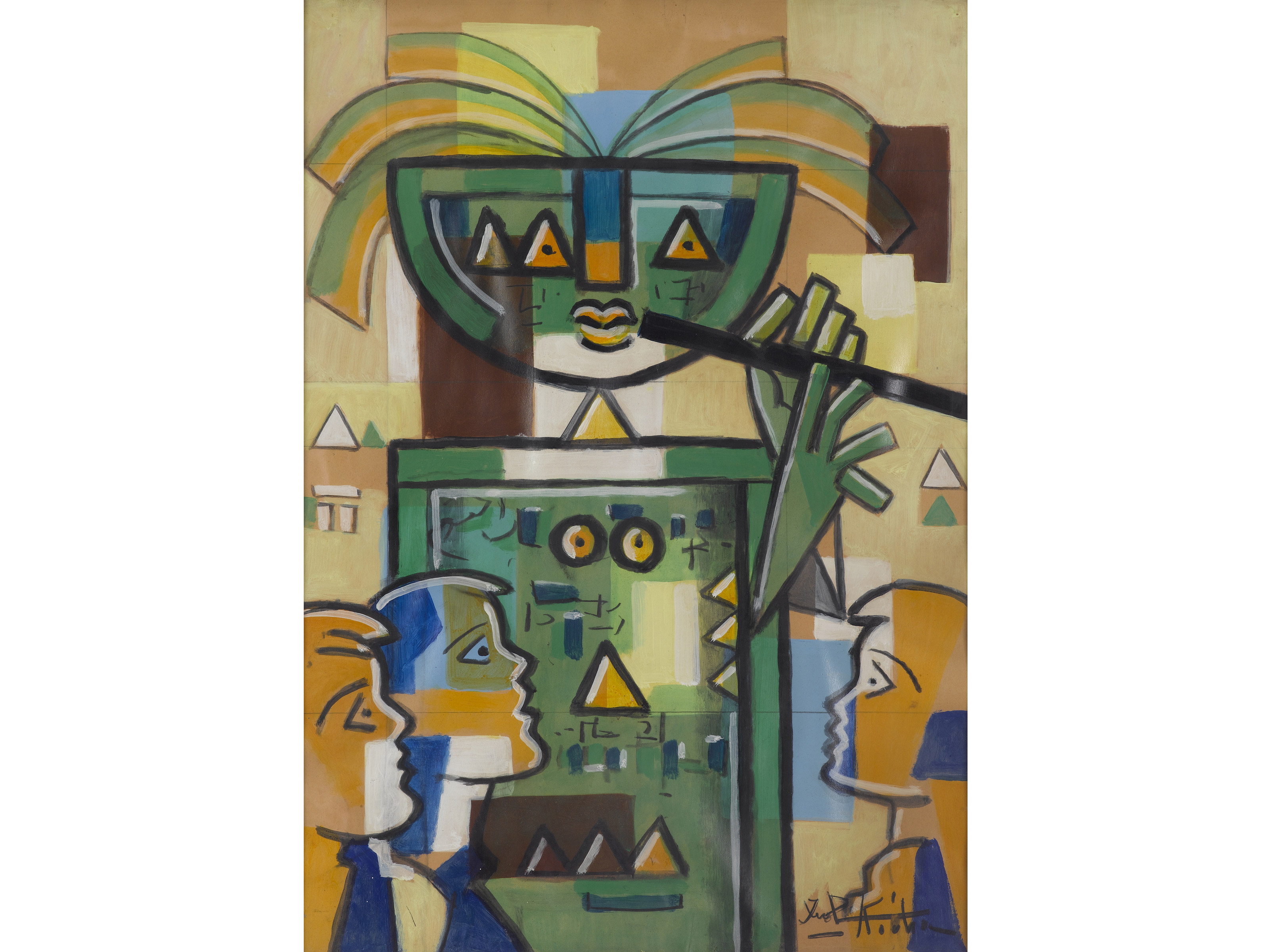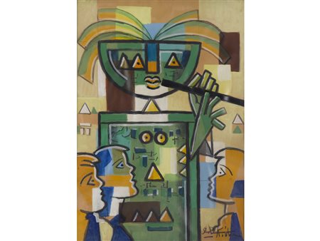 Ibrahim Shaban Likmetaj Kodra (Ishëm 1918–Milano 2006) Il Suonatore Tempera su carta applicata su tela Firmato Misure 70x50 cm