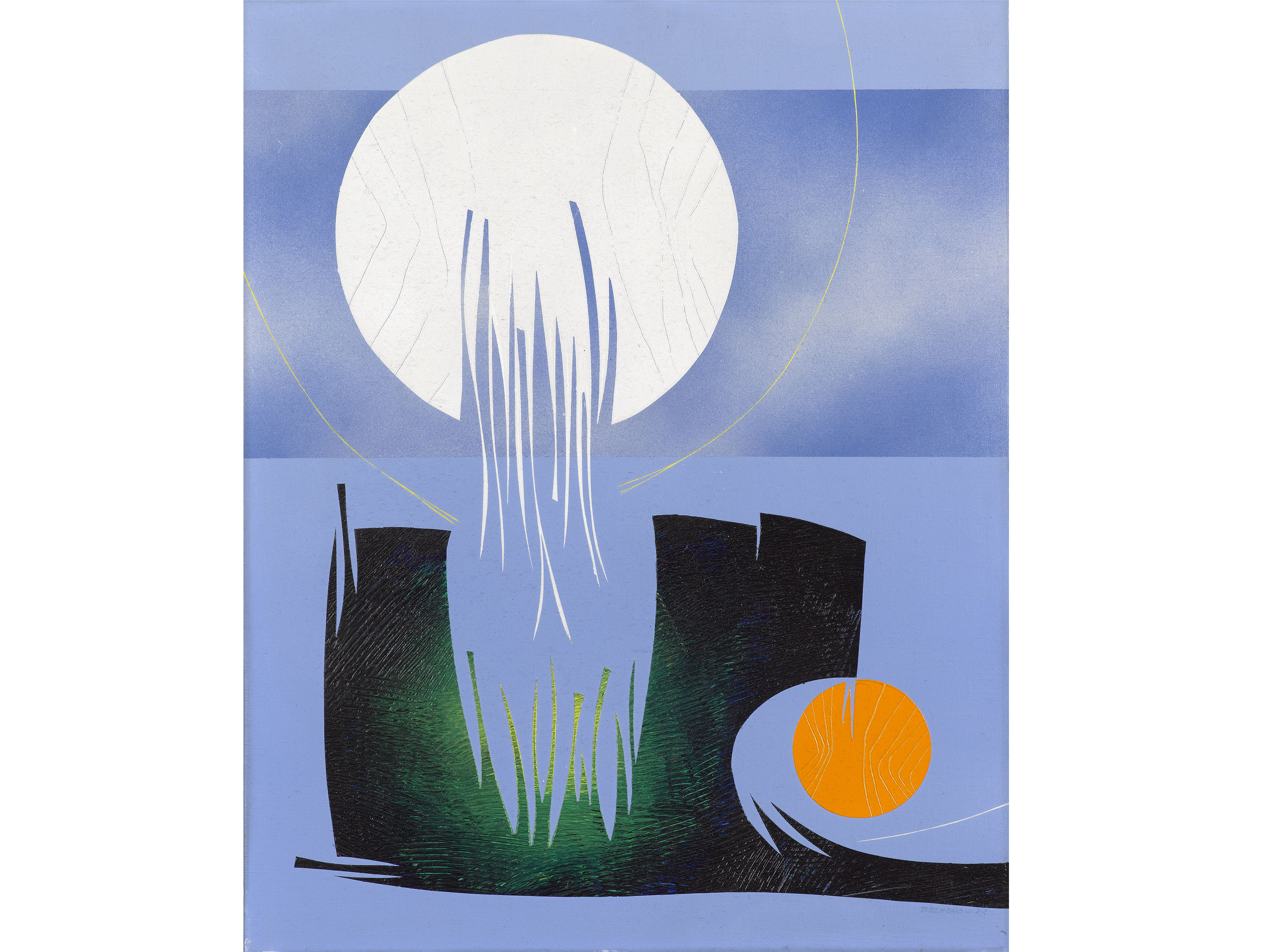 Elvio Becheroni (Firenze 1934-Brasile 2000) Pre-paesaggio Olio su tela Firmato e datato 1973 Misure 50x40 cm