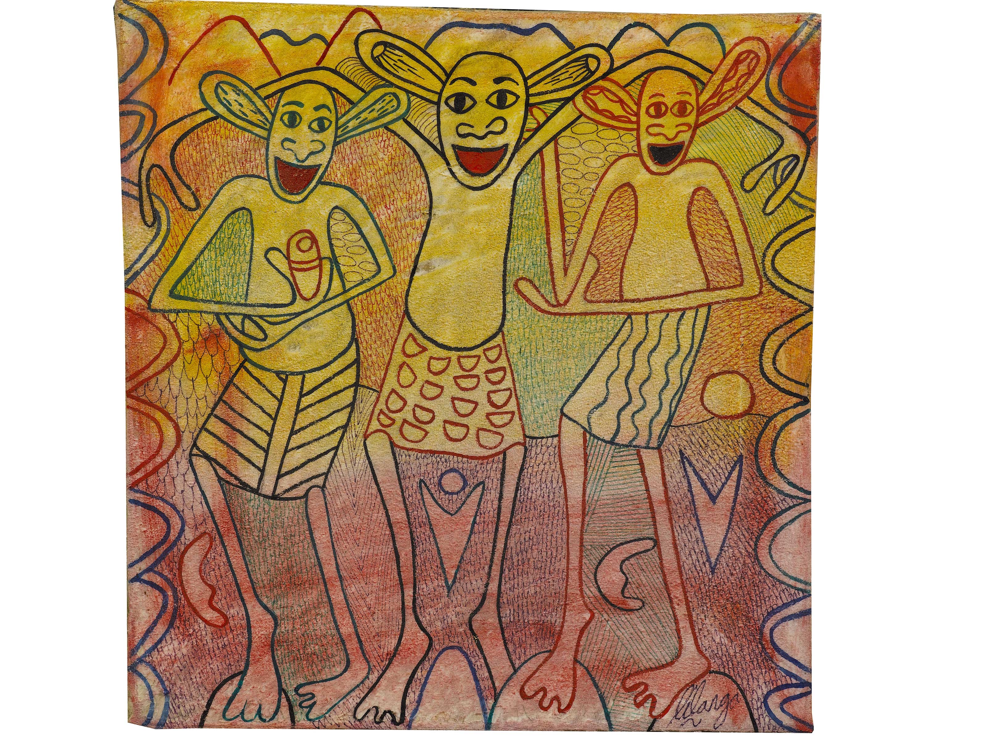 George Lilanga (Kikwetu 1934–Dar es Salaam 2005) Senza Titolo Olio su pelle...