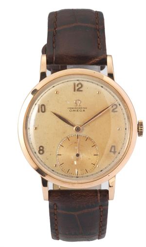 OMEGA Solo tempo in oro rosa anni '50 Referenza 2366 Diametro 36 mm Cassa in due corpi, quadrante con indici e numeri applicati. Movimento a carica manuale. A pink gold only time 50's. Reference 2366