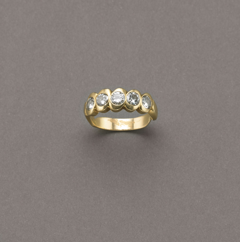 Lot 20 | Veretta in oro giallo con cinque diamanti rotondi taglio a brillante ct...