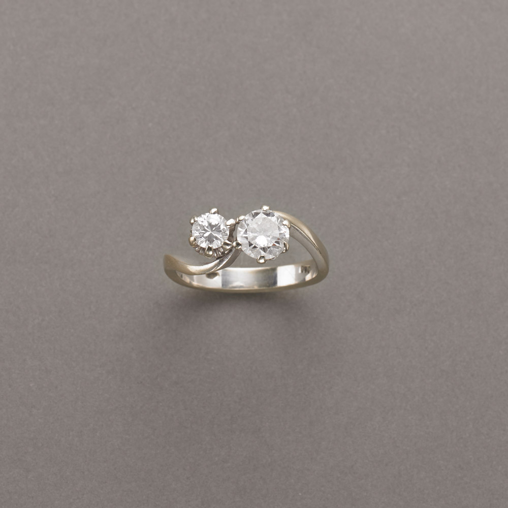 Lot 22 | Anello contrarié in oro bianco con due diamanti rotondi taglio a brillante...
