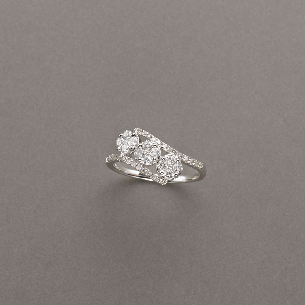 Lot 24 | Anello "Trilogy" lievemente contrariè con tre fiorellini di piccoli diamanti...