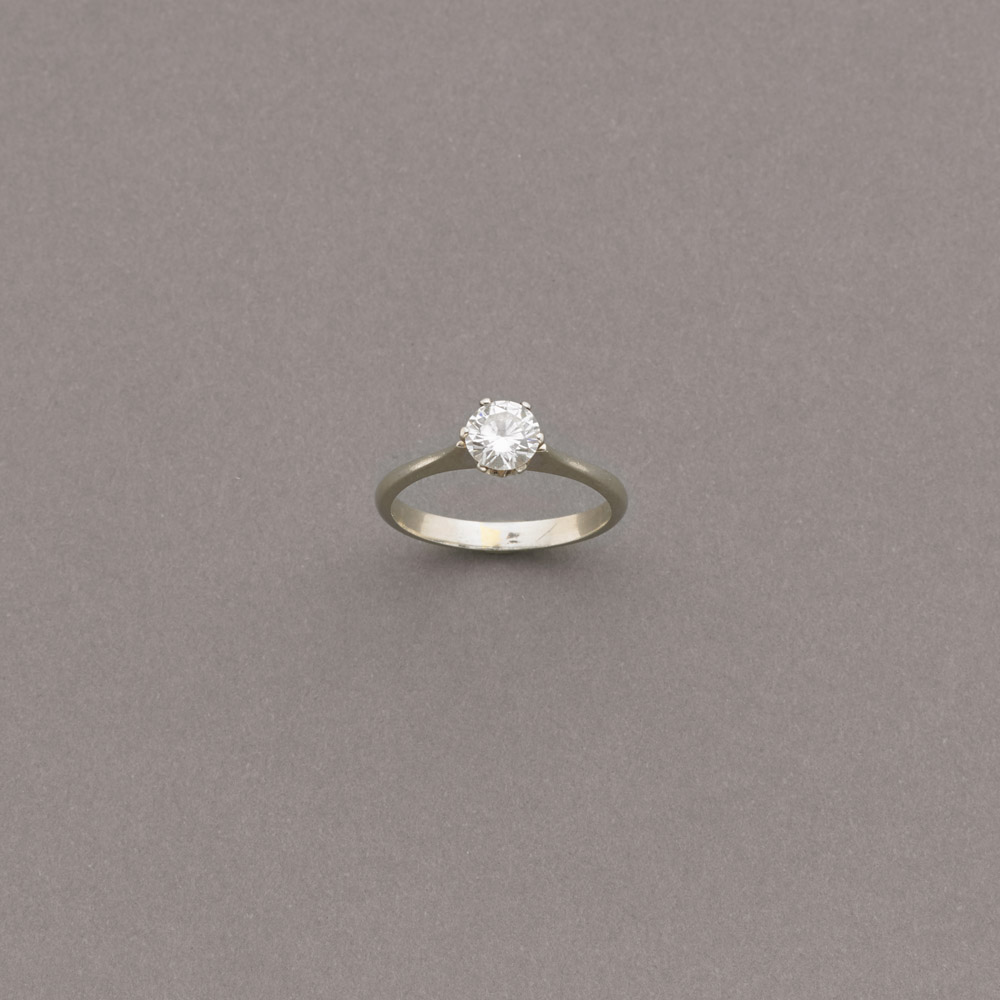 Anello solitario in oro bianco con diamante taglio brillante ct 0.70 circa. gr 2.60 misura 14/54 A diamond single stone white gold ring