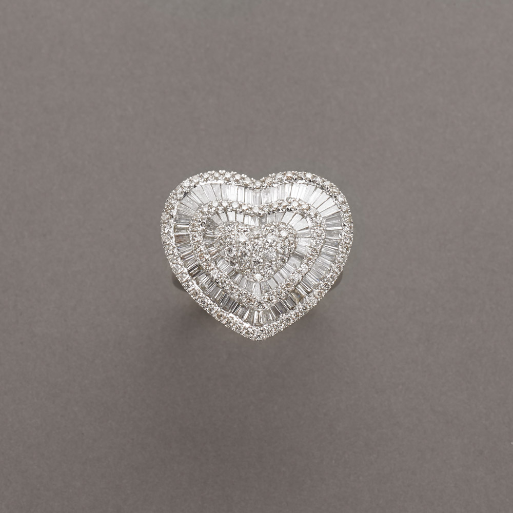 Lot 96 | Anello in oro bianco a forma di grande cuore con pavè di diamanti di varie...