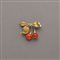 Spilla a guisa di ciliege in corallo arancio rossastro del mediterraneo, oro...