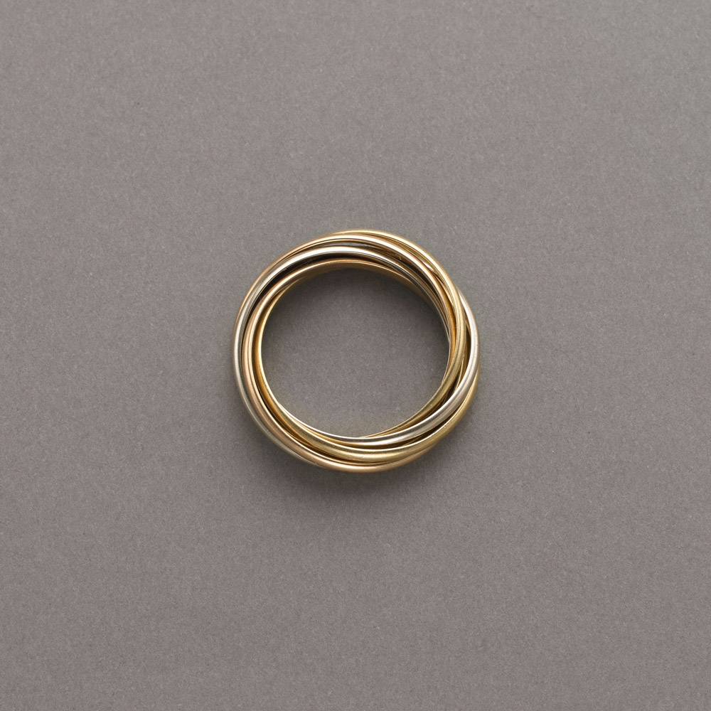 Lot 141 | Sette fedi di Cartier una nell'altra in oro giallo, bianco e rosso, g.7,40,...