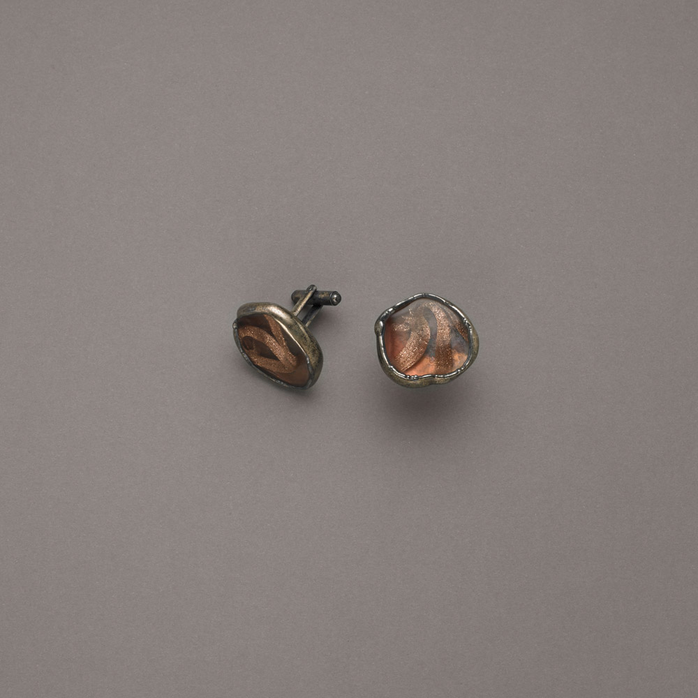 Gemelli argentati con vetro e quarzo avventurina g. 28,30, anni novanta. Design Giorgio Vigna Silver-plated and quartz cufflinks, circa 1990s. Design Giorgio Vigna