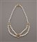 Collier di perle Akoja bianche coltivate con al centro doppio filo montato a ricordare periodo rinascimentale con centrale, collegamenti e chiusura di ovali in oro giallo centrati da quattro rubini taglio composito e diamanti tondi taglio huit-huit, g.50,90 Single strand Akoja cultured pearl necklace doubling at the front with diamond and ruby spacers