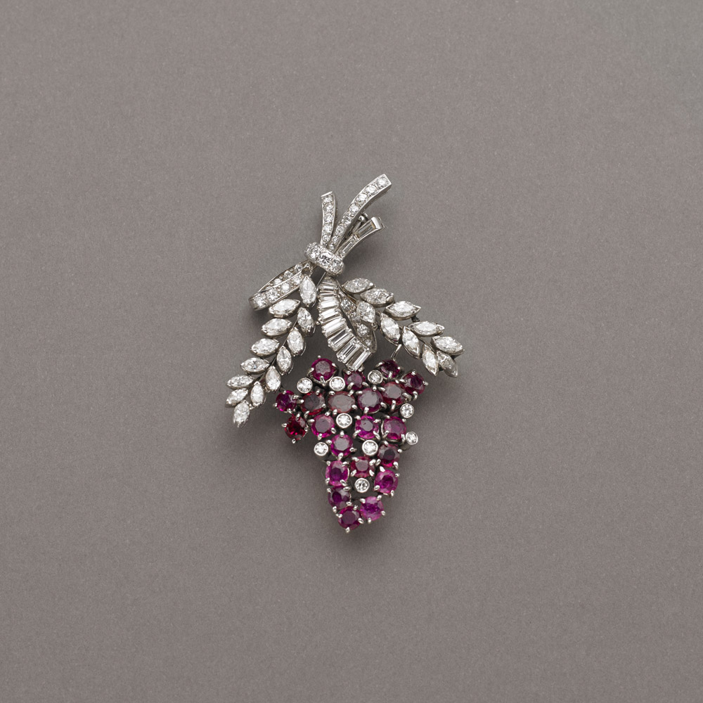 Lot 202 | Spilla in platino anni '50 a guisa di bouquet con diamanti marquise,...