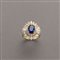 Anello in oro giallo con zaffiro centrale ovale taglio composito ct. 2,25 circa contornato da diamanti rotondi taglio a brillante, tapered e marquise, g.9,40, misura: 12/22 Sapphire and diamond cluster ring