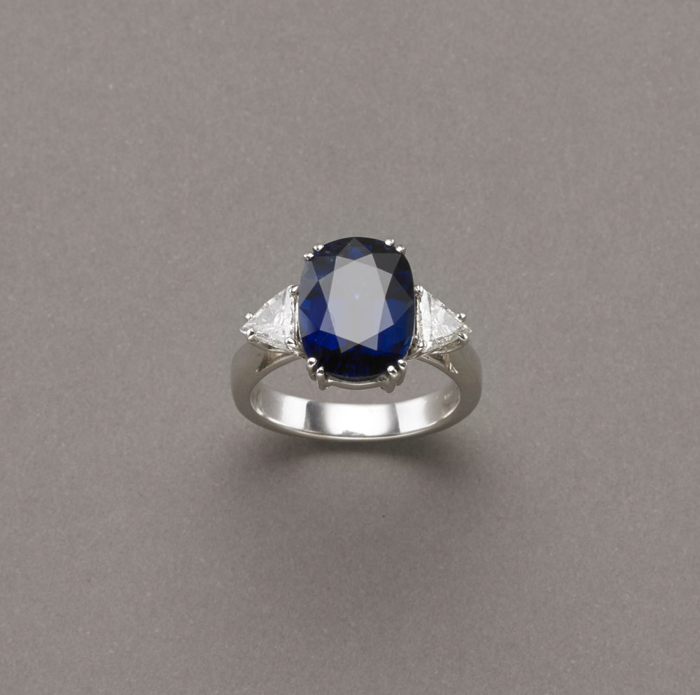 Lot 404 | Anello in oro bianco con zaffiro ovale taglio composito di ct.6,52 e due...