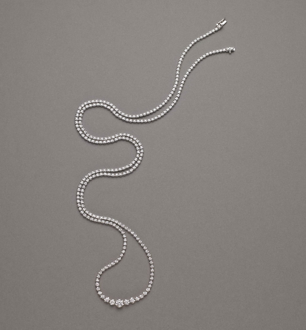 Lot 407 | Collana tennis in oro bianco con diamanti a scalare per complessivi ct.4,80...