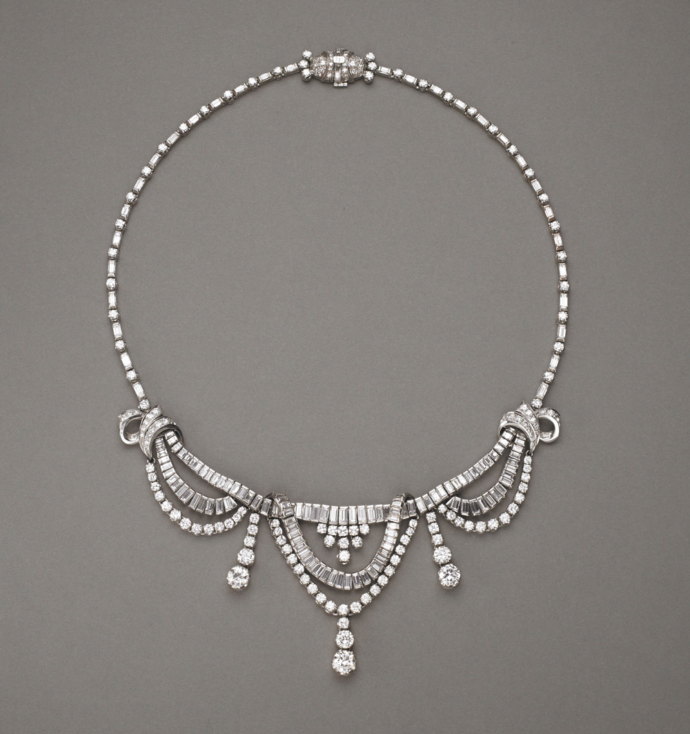 Lot 420 | Spettacolare collier d'epoca in oro bianco con diamanti di varie forme e...
