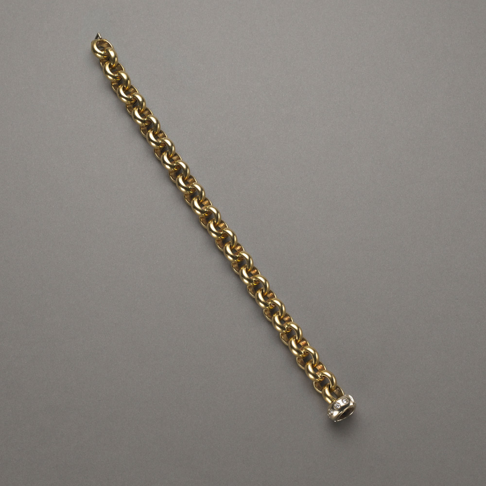 Bracciale rolò in oro giallo con chiusura in oro bianco, diamanti rotondi...