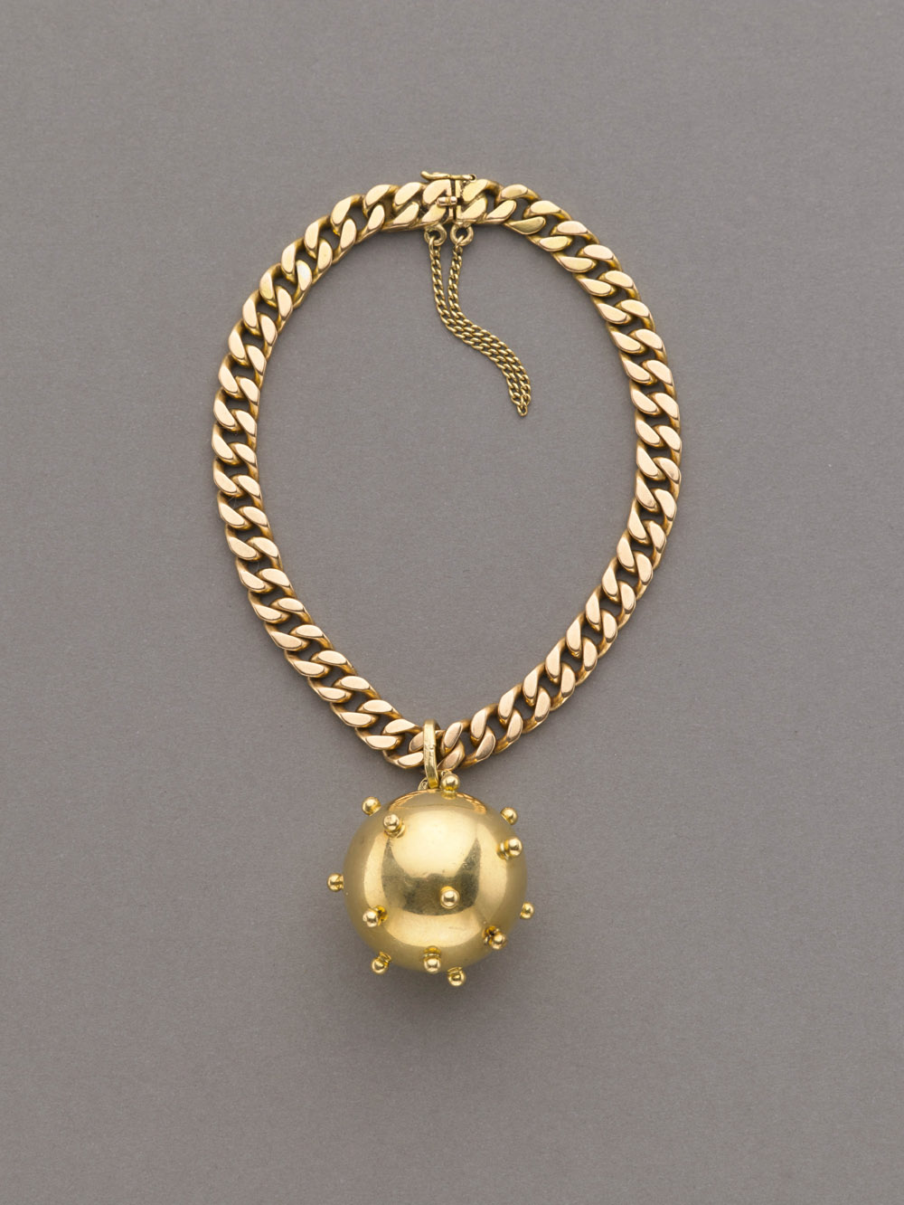 Bracciale con catena a groumette in oro rosso e ciondolo a forma di "bomba"...