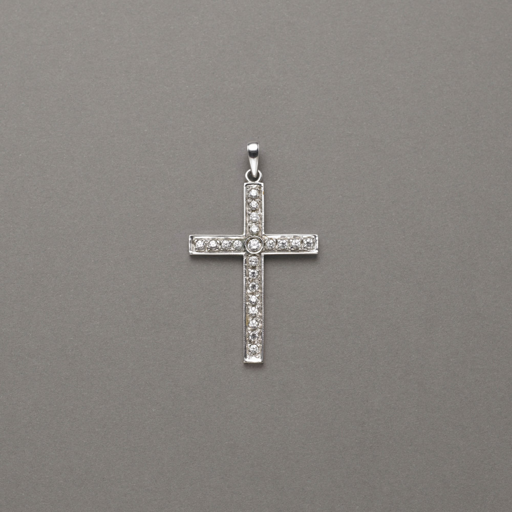 Croce in platino con diamanti rotondi taglio a brillante lungh. cm 4, g.4,50 Diamond and platinum cross