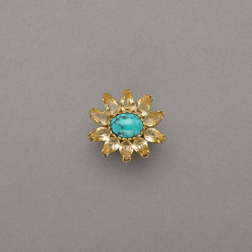 Lot 492 | Spilla ovale a forma di fiore con turchese ovale cabochon al centro...