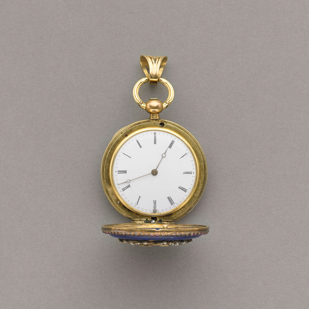 Lot 500 | Orologio da tasca in oro giallo e argento con lapislazzuli, diamanti e...