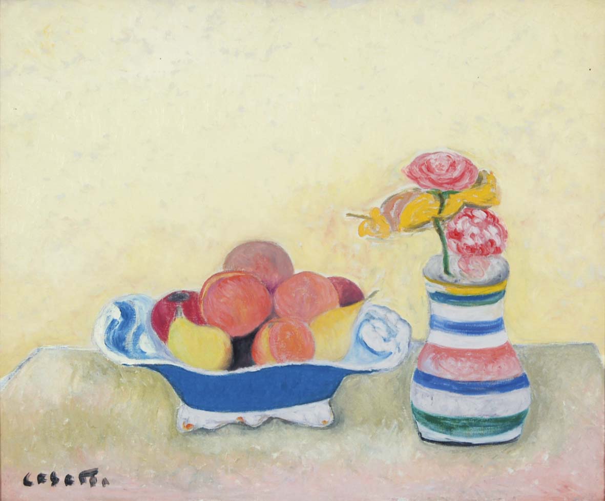 CESETTI GIUSEPPE Tuscania 1902 - Viterbo 1991 Natura morta olio su tela 50x60 cm firma in basso a sinistra