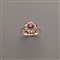 Anello in oro rosa a fiore con al centro una pietra rotonda di colore rosso...