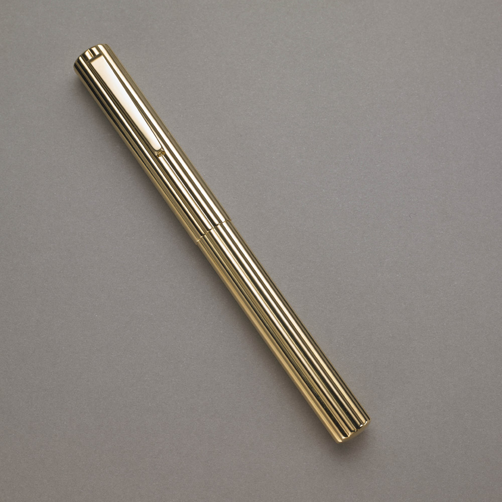 Stilografica in oro giallo scanalata con righe verticali, complessivi g.24,20, BVLGARI Gold fountain pen. BVLGARI