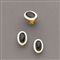 Demi-parure anni '60/'70 in oro giallo formata da anello ed orecchini di forma ovale con smalto bianco ed al centro una pietra nera gatteggiante di forma ovale taglio cabochon, complessivi g.42,20, misura anello: 6/46 White enamel and black stone gold demi-parure, circa 1960's/70s